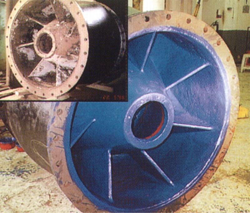 Trám phục hồi mặt bích đầu hút, vỏ và cánh máy bơm bị mòn